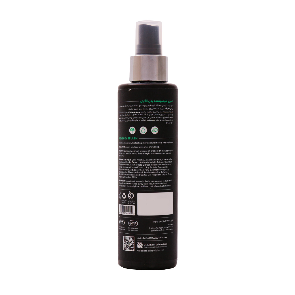 این محصول حاوی عصاره های گیاهانی مانند؛ بابونه، گل همیشه بهار، زیرفون و گل گندم است که باعث آرامش و تسکین پوست می شوند. وجود پروتئین سویا و سوپر اکسید دیسموتاز در این اسپری به آبرسانی و تغذیه پوست کمک میکند و از خشکی جلوگیری می نماید. همچنین، این محصول با کنترل تعریق، پوست را مرطوب نگه داشته و حس تازگی طولانی مدت به آن می بخشد.