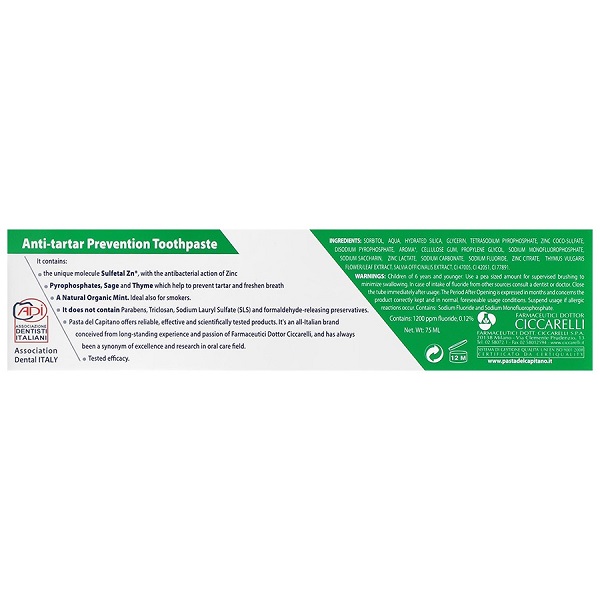 خمیر دندان کاپیتانو مدل ANTITARTAR حجم 75 میل | خمیر دندان ضد جرم و محافظ لثه برای سفید شدن دندان ها