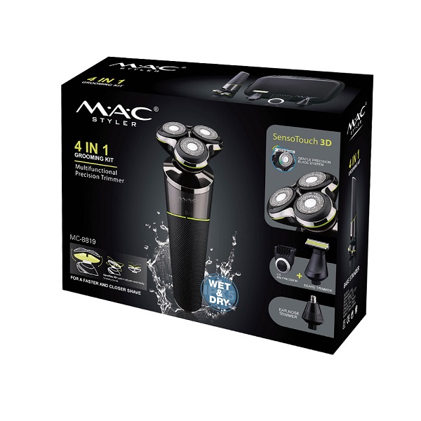 ریش تراش مک استایلر مدل MAC-8819 دارای طراحی هوشمندانه است که طراحی آرگونومیک دارد و به صورتی ساخته شده است که بتوانید به بهترین نحو ممکن دستگاه را در دست گرفته و هیچگونه خستگی برای تان ایجاد نشود و مدت زمان زیادی از آن استفاده کنید. این محصول دارای سه سری تیغه متفاوت سه تیغ، موزن گوش و بینی و سری اصلاح بدن باشد در نتیجه یکی از کاملترین دستگاه های ماشین اصلاح به شمار میرود.