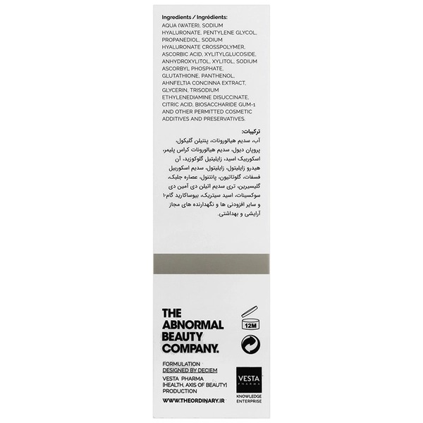سرم هیالورونیک اسید اوردینری با ترکیب هیالورونیک اسید 2 درصد و ویتامین B5 فرموله شده است. این دو ترکیب نقش مهمی در آبرسانی عمیق و تقویت سد دفاعی پوست دارند. هیالورونیک اسید میتواند تا هزار برابر وزن خود آب جذب کند و به همین دلیل این سرم تاثیر بسیار چشمگیری در نرم شدن، انعطاف پذیری و شفافیت پوست دارد.