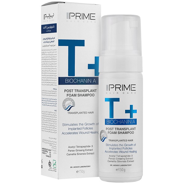شامپو فوم پس از کاشت مو پرایم مدل T حجم 150 میل دارای پایه ملایم، فاقد سولفات، مناسب شستشو و پاکسازی پوست سر حامل فولیکولهای پیوندی پس از انواع روشهای کاشت مو مانند PRP، FIT،FUT و سایر روشهای ترکیبی میباشد. شامپو فوم پس از کاشت مو پرایم مدل T حجم 150 میل برای گیرندگان کاشت مو با ترکیبات موثری فرموله شده است تا پوست ظریف پس از کاشت را به آرامی تمیز کرده و از عفونت های احتمالی جلوگیری کند.