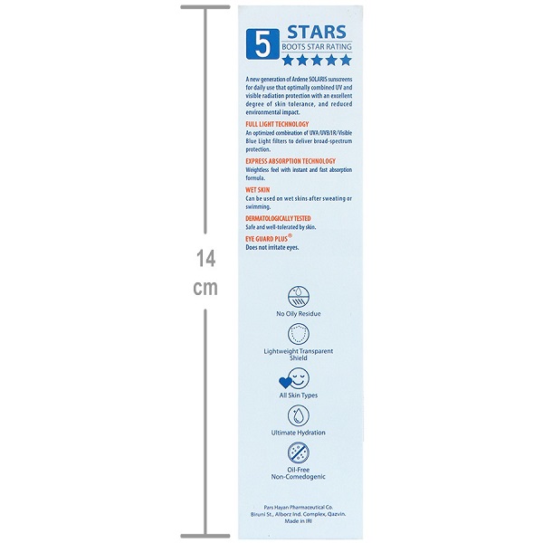 این اشعه‌ ها عامل اصلی پیری زودرس، لک و تیرگی و آسیب‌ های سلولی هستند. استفاده مداوم از این لوسیون به جلوگیری از این آسیب‌ ها کمک کرده و پوست را سالم و جوان نگه می‌ دارد. ویژگی مهم لوسیون ضد آفتاب بیرنگ آردن سولاریس SPF 50 مدل AQUA NEWGEN مناسب پوست حساس و چرب، بافت سبک و غیر چرب آن است. این ویژگی باعث می‌ شود حتی پوست‌ های چرب نیز بتوانند بدون نگرانی از ایجاد جوش یا احساس سنگینی، از این محصول استفاده کنند. فرمول بیرنگ آن نیز اجازه می‌ دهد محصول زیر آرایش یا به تنهایی استفاده شود، بدون اینکه پوست سفیدک یا ظاهر مصنوعی پیدا کند.