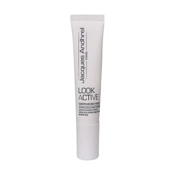 پوست حساس و نازک دور چشم به مراقبت ویژه و مخصوص نیاز دارد که در نتیجه افزایش سن و خستگی و کمبود آب پوست ناحیه اطراف دور چشم، باعث بروز حلقه های تیره و پف اطراف چشم می شود. نوآوری در فرمول کرم دور چشم ژاک آندرل Look Active ، شامل جینگو بیلوبا (Ginkgobiloba Extract) جهت تسهیل خونرسانی اطراف چشم ها، کافئین (Caffeine) به دلیل ویژگی های ضد التهابی و خواص آنتی اکسیدانی در کاهش تیرگی دور چشم، کلاژن جهت پیشگیری از پیری و افزایش خاصیت ارتجاعی پوست و کمک به کاهش چروک ها است. همچنین ترکیبی از پروتئین هیدرولیزشده لوپین (Lupine) و ویتامین E اجازه بازسازی قابل ملاحظه ای در ناحیه اطراف چشم ها را می دهد.
